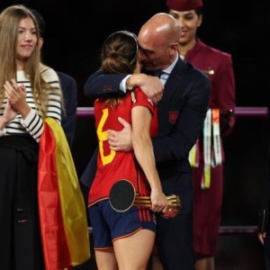 体坛周报全媒体原创 女足世界杯决赛,西班牙1比0战胜英格兰,夺得冠军。西班牙足协主席鲁维亚莱斯在颁奖时的举动引发巨大争...